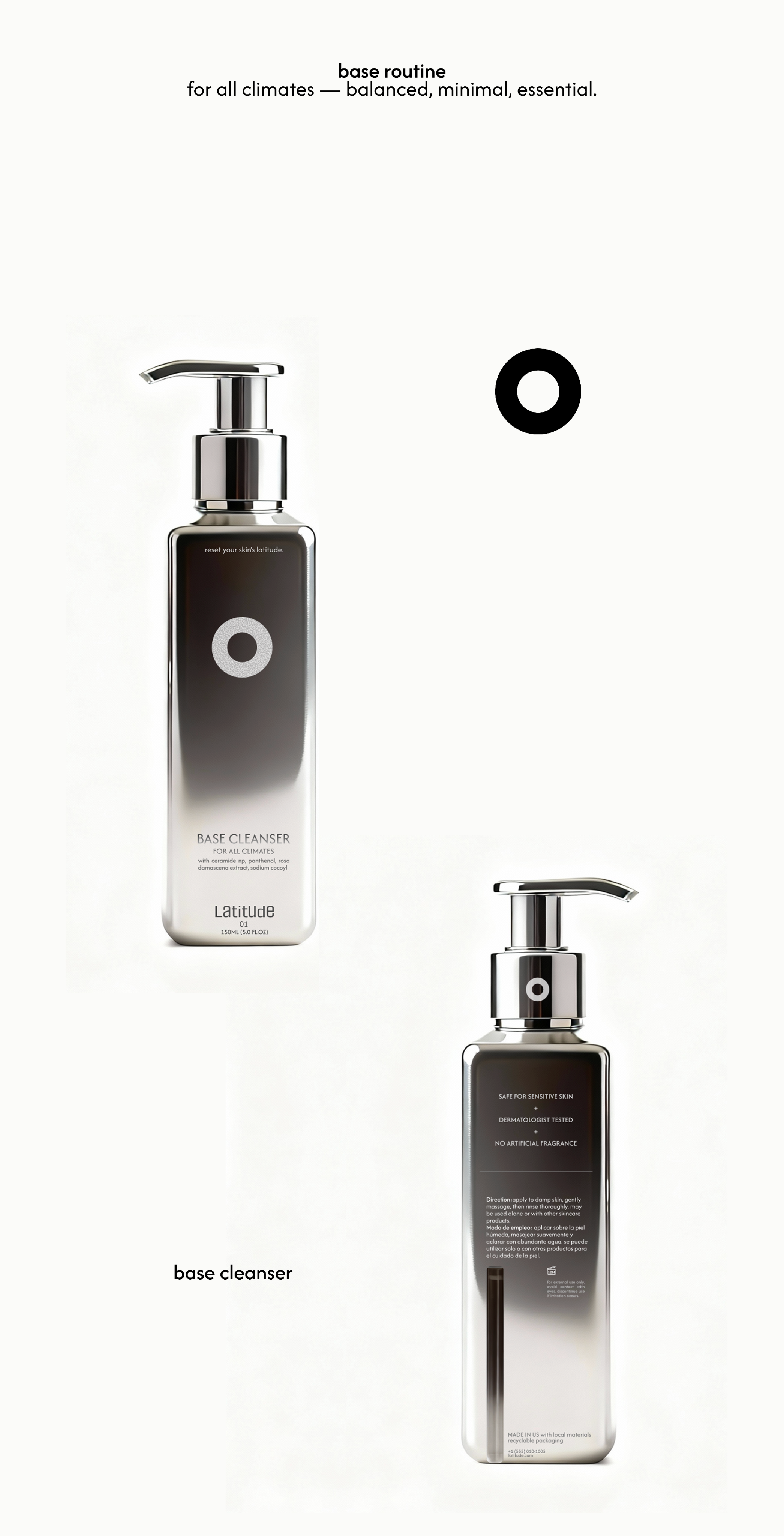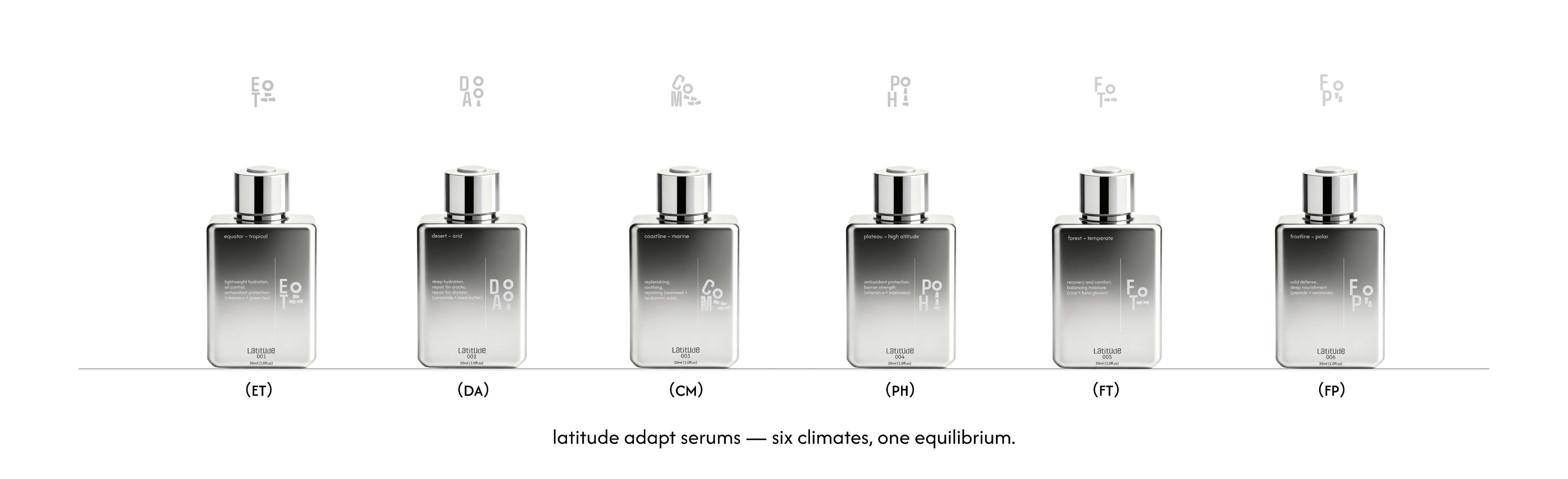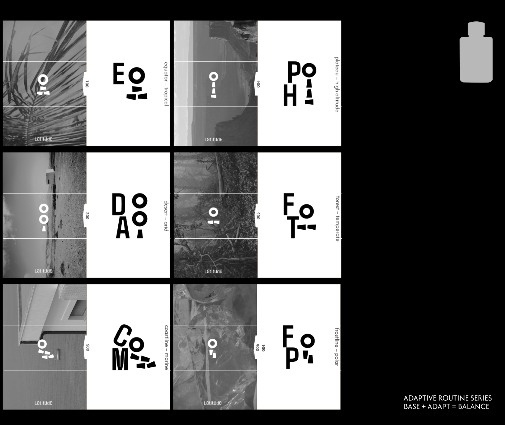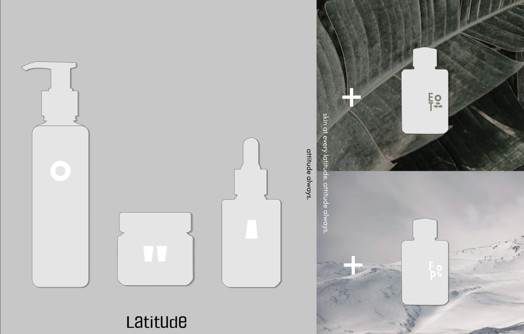 Latitude is a conceptual skincare brand that redefines balance through environmental adaptability. Designed for all climates, it blends minimal aesthetics with modular packaging and flexible routines. Each product reflects the idea of equilibrium — where design precision meets natural variation, and measurement becomes relational rather than absolute.